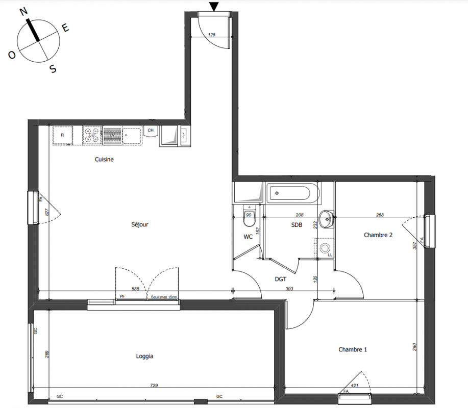 242 600€ Appt. T3 65.73m2 0-RDC
