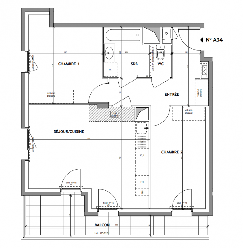 279 242€ Appt. T3 57.73m2 0-RDC
