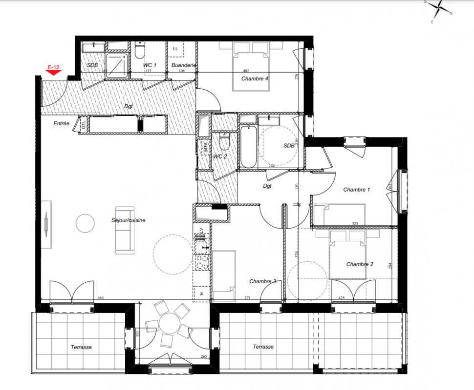 | Voir | Disponible | 440 190€ | E02 SS | Appt. | - | 105.05m2 | 0-RDC | Disponible | 440 190€ | Voir |