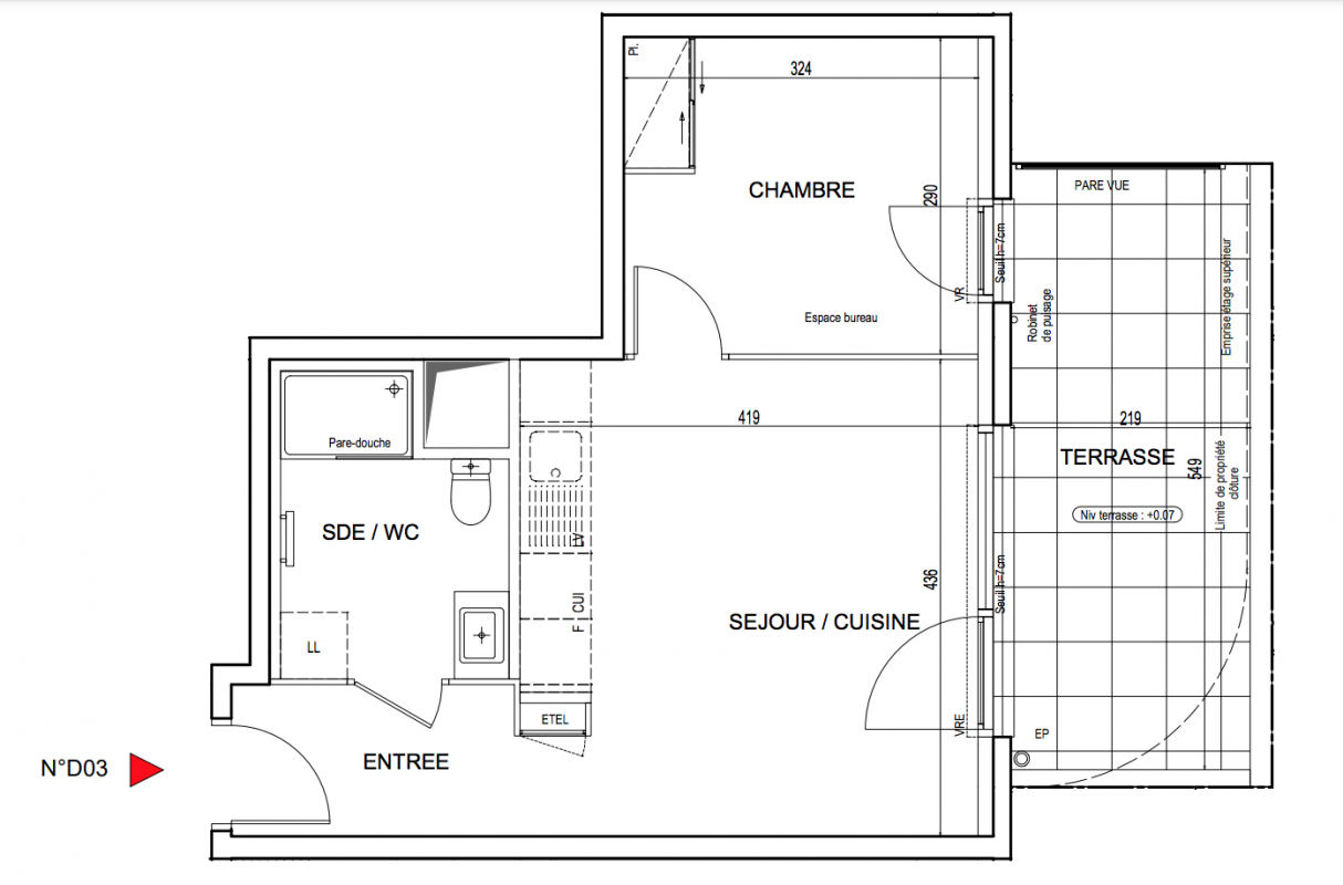 | Voir | Disponible | 226 000€ | D02 | Appt. | T2 | 38.59m2 | 0-RDC | Disponible | 226 000€ | Voir |