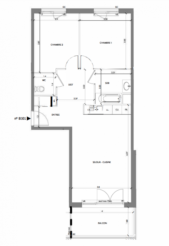 218 000€ Appt. T3 59.3m2 2ème