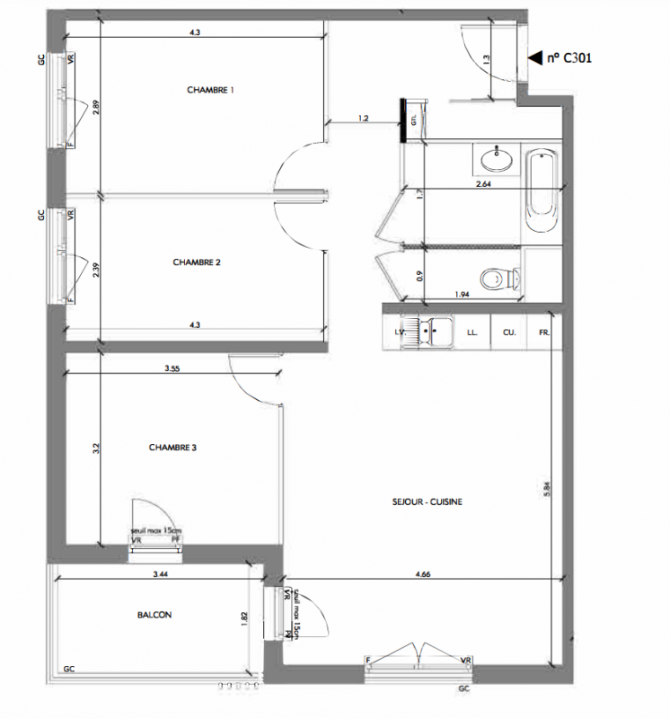 297 500€ Appt. T4 76.25m2 0-RDC