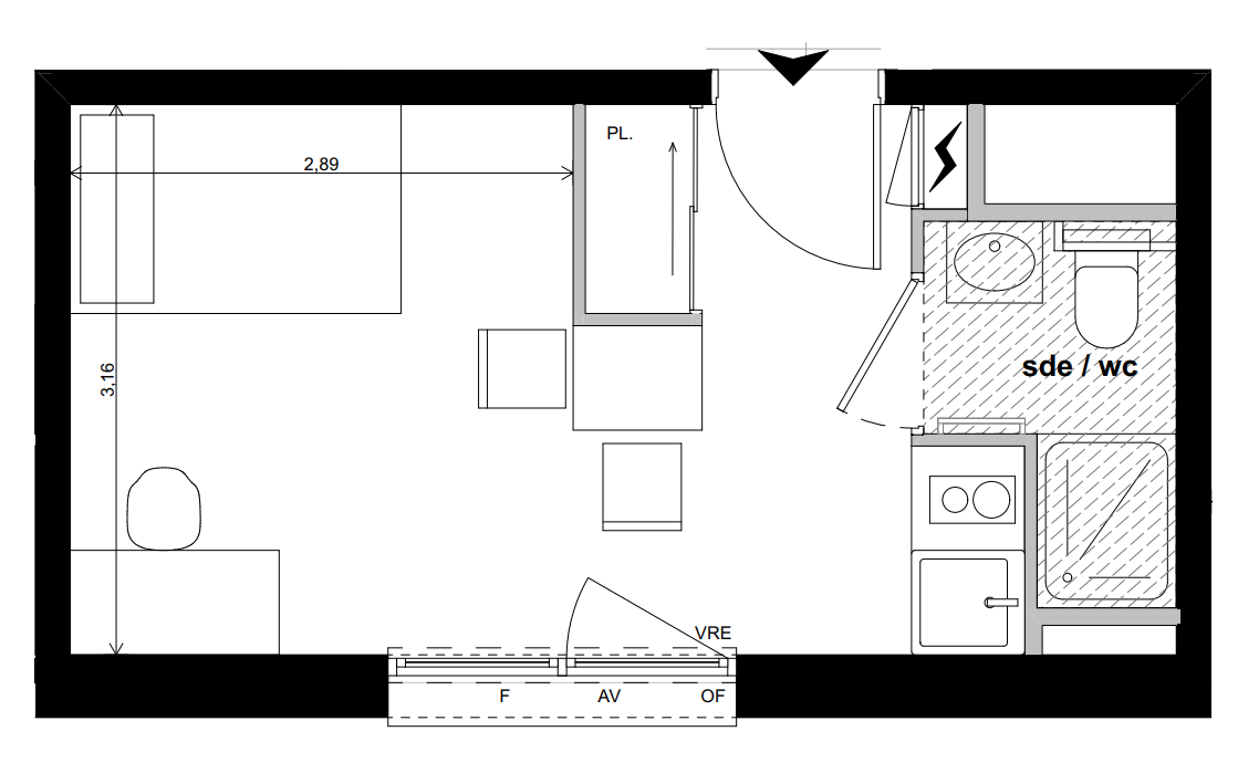 149 000€ Appt. Studio 21.6m2 0-RDC