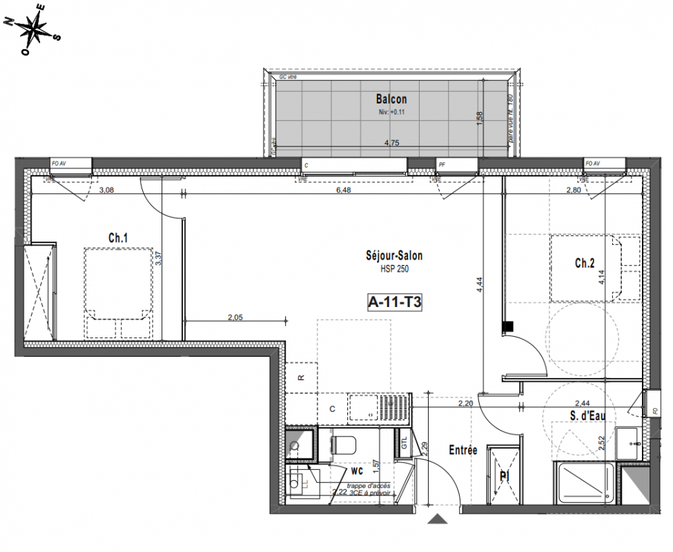 329 000€ Appt. T3 64.52m2 2ème