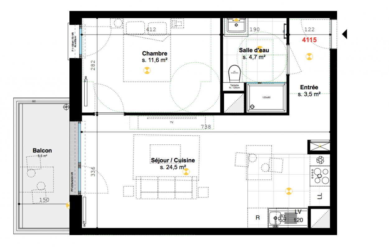 | Voir | Disponible | 241 000€ | 3156 | Appt. | T2 | 44m2 | 5ème | Disponible | 241 000€ | Voir |