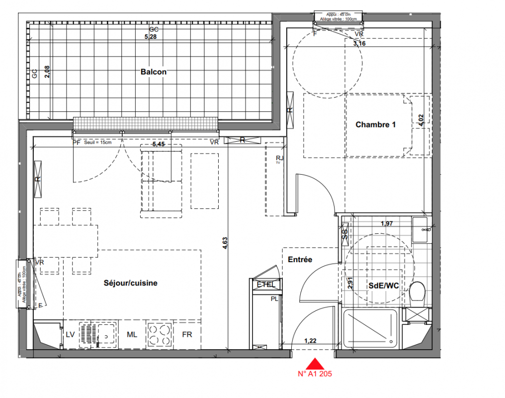 | Voir | Disponible | 184 000€ | A1-101 | Appt. | T2 | 44.22m2 | 1er | Disponible | 184 000€ | Voir |