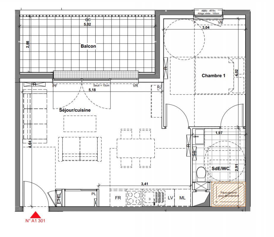 184 000€ Appt. T2 44.22m2 1er