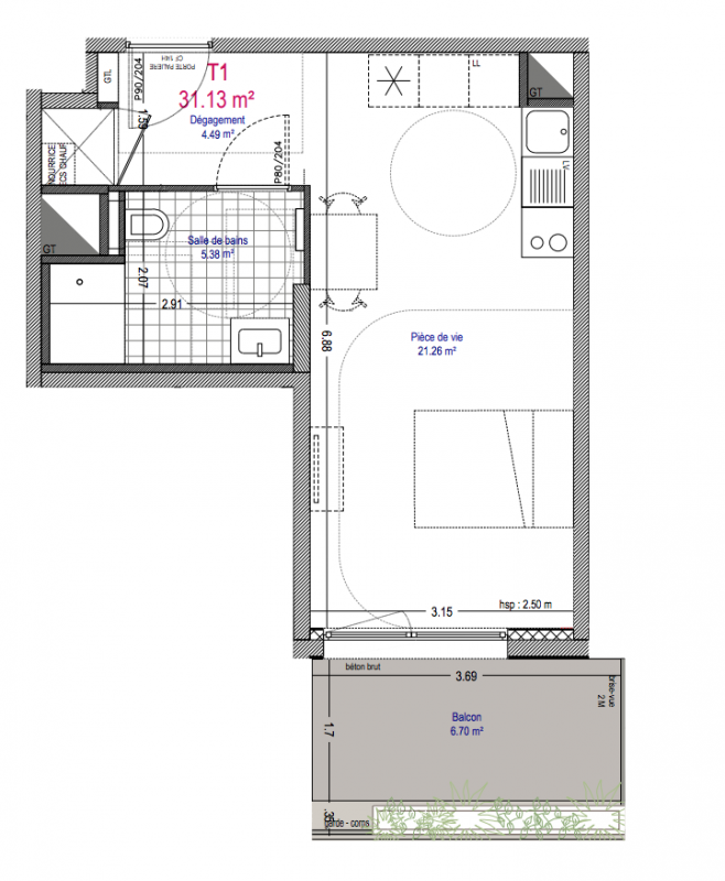 205 000€ Appt. Studio 31.13m2 1er