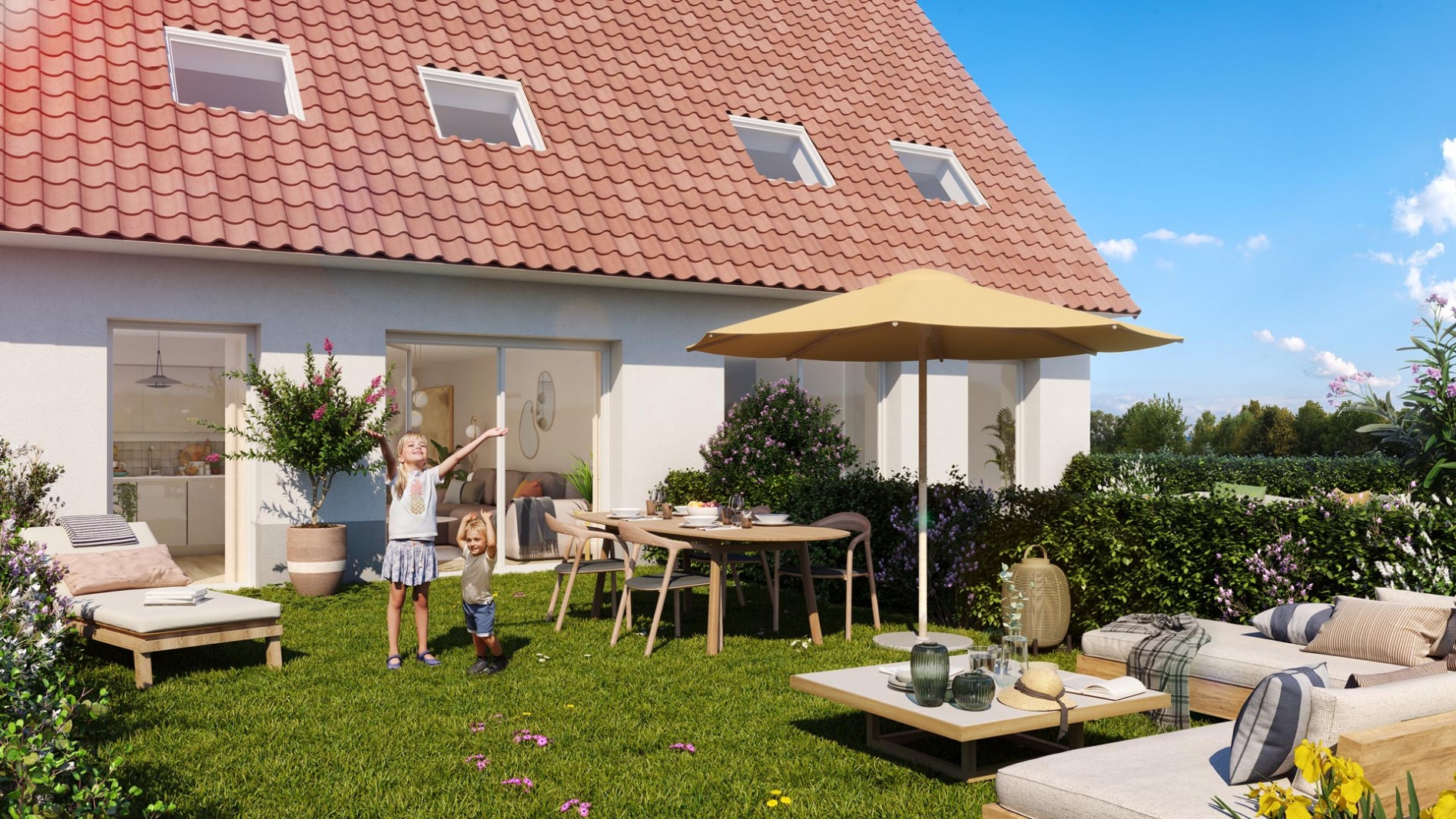 Appartements 2 et 3 pièces évolutifs et maisons familiales avec balcon, terrasse ou jardin. À deux pas des commerces, écoles et équipements.