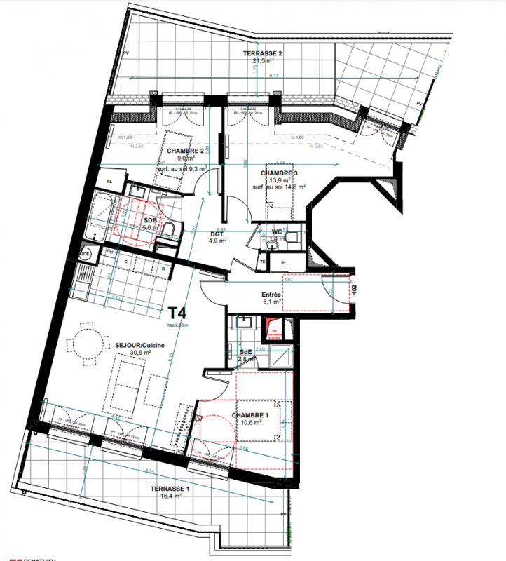 Autres logements T4 du programme "LES TERRASSES MANSART"