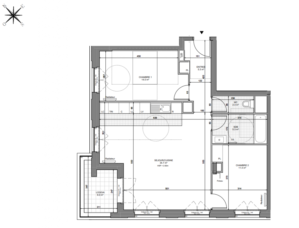 424 000€ Appt. T3 72.6m2 7ème