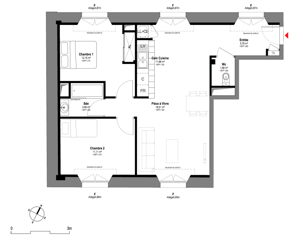 426 757€ Appt. T3 76.9m2 0-RDC