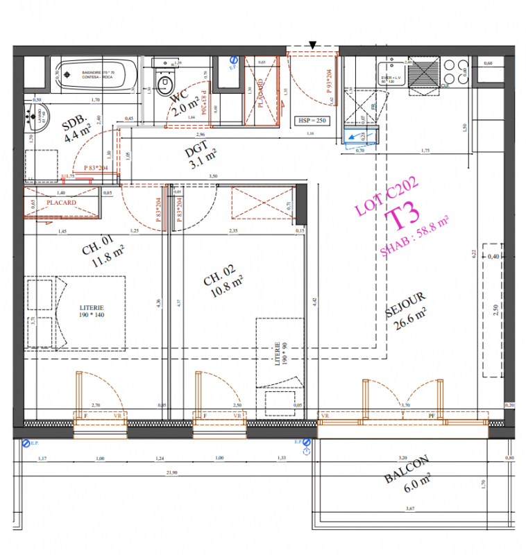 | Voir | Disponible | 252 000€ | C102 | Appt. | T3 | 58.8m2 | 1er | Disponible | 252 000€ | Voir |