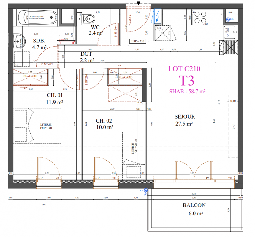 | Voir | Disponible | 252 000€ | C102 | Appt. | T3 | 58.8m2 | 1er | Disponible | 252 000€ | Voir |