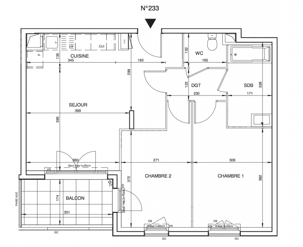 323 100€ Appt. T3 62.72m2 2ème