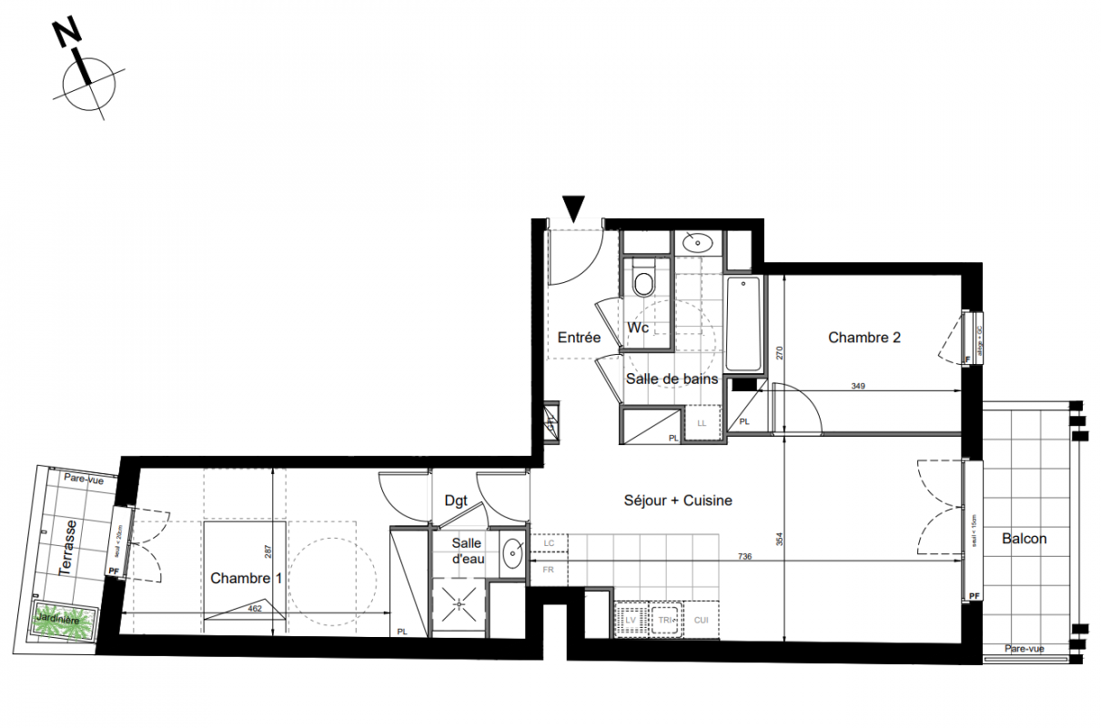 342 750€ Appt. T3 67.7m2 2ème