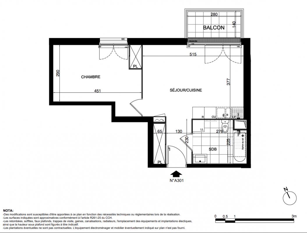 280 999€ Appt. T2 43m2 1er