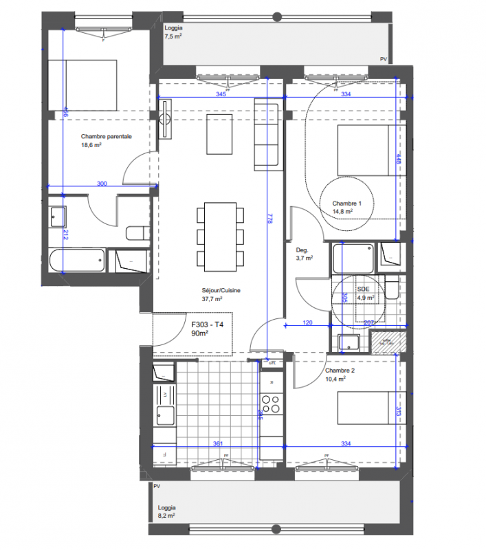 555 850€ Appt. T4 78.4m2 3ème