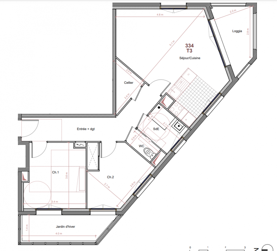 396 967€ Appt. T3 66.3m2 0-RDC