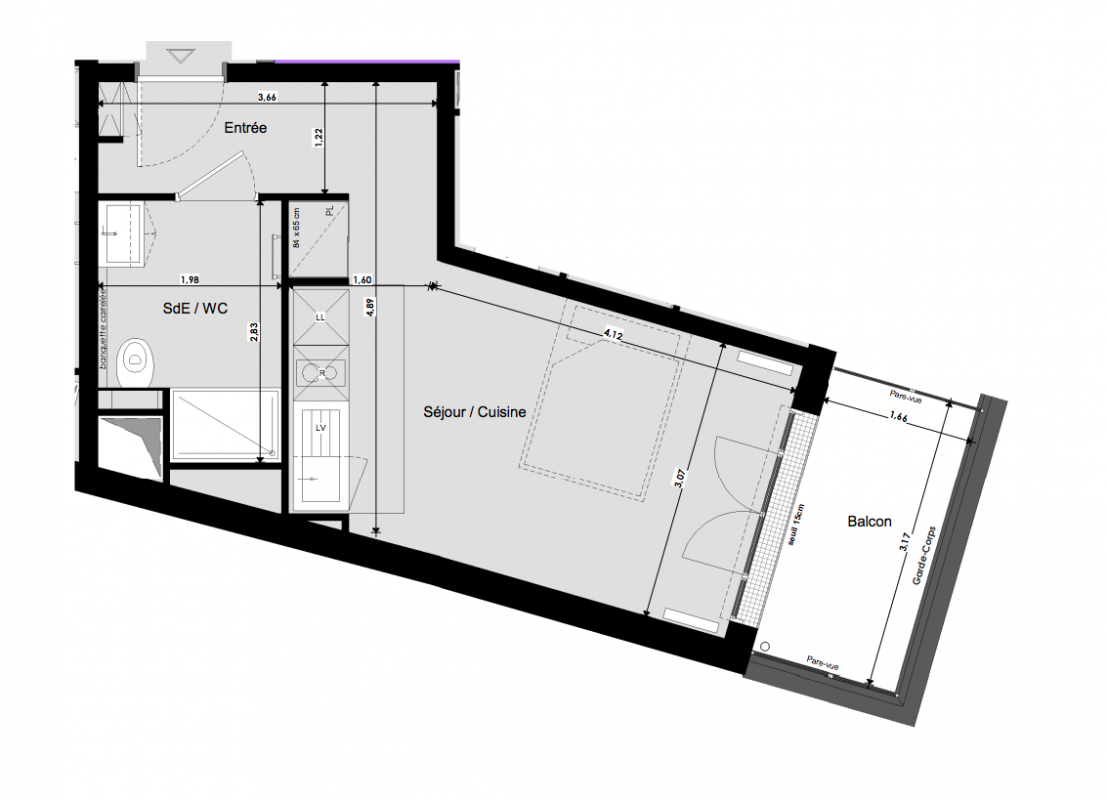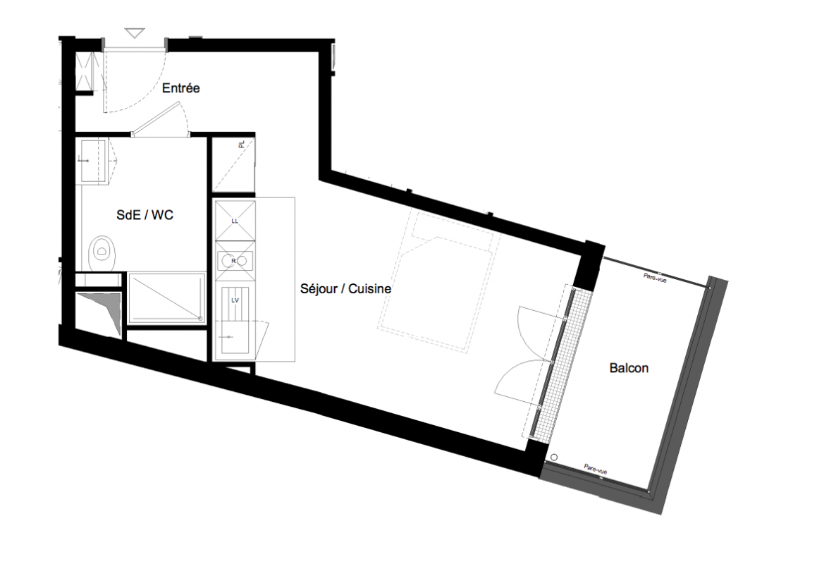 La résidence se compose de 26 logements, du T1 au T5, répartis dans un bâtiment, avec un volume principal en R+4, surmonté de deux niveaux.