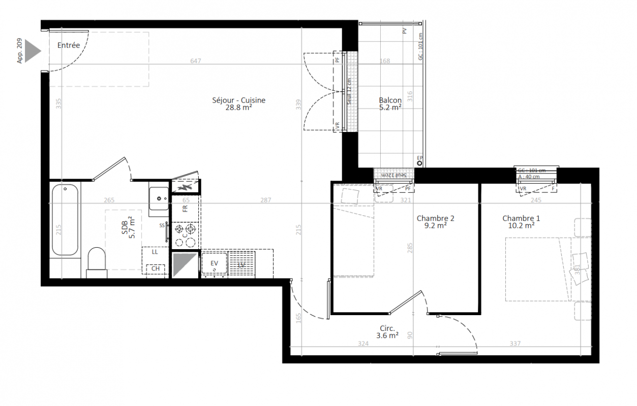 | Voir | Disponible | 277 422€ | 207 | Appt. | T3 | 66.1m2 | 2ème | Disponible | 277 422€ | Voir |