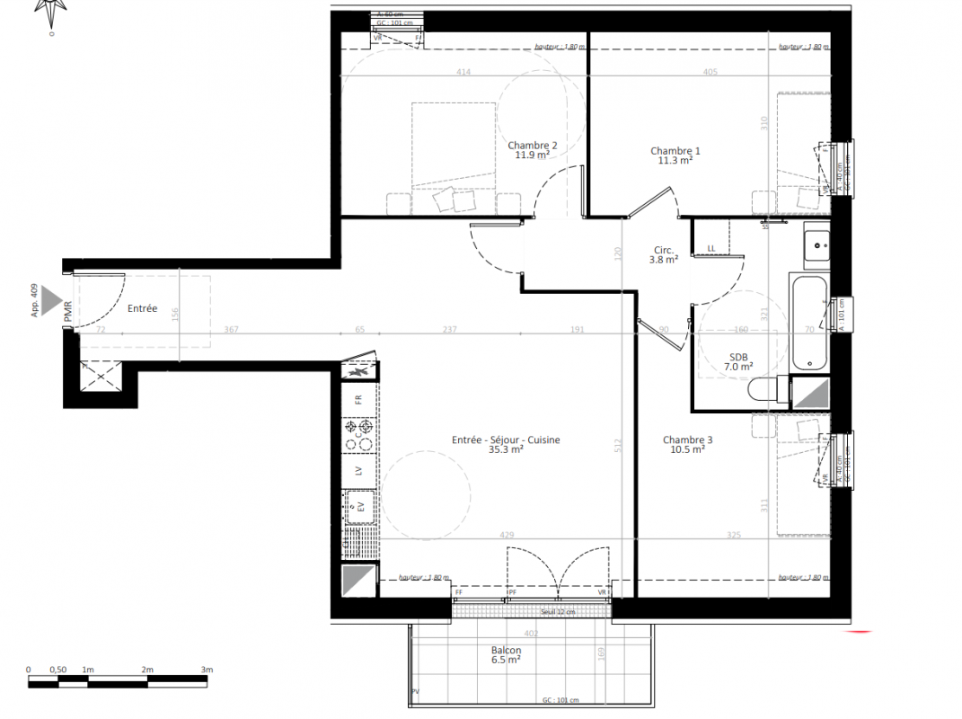Tous les logements disposent d'un balcon (jusqu'à 9 m²) et de plans optimisés avec cuisines ouvertes.