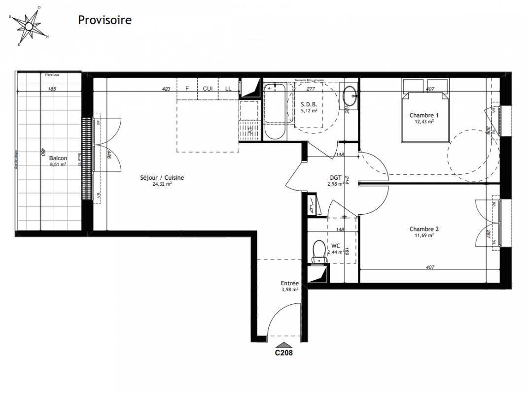 | Voir | Disponible | 266 900€ | C108 | Appt. | T3 | 62.96m2 | 1er | Disponible | 266 900€ | Voir |