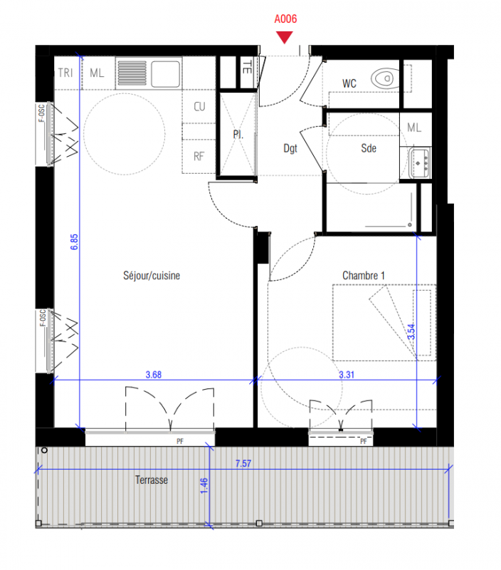 308 000€ Appt. T2 45.7m2 3ème