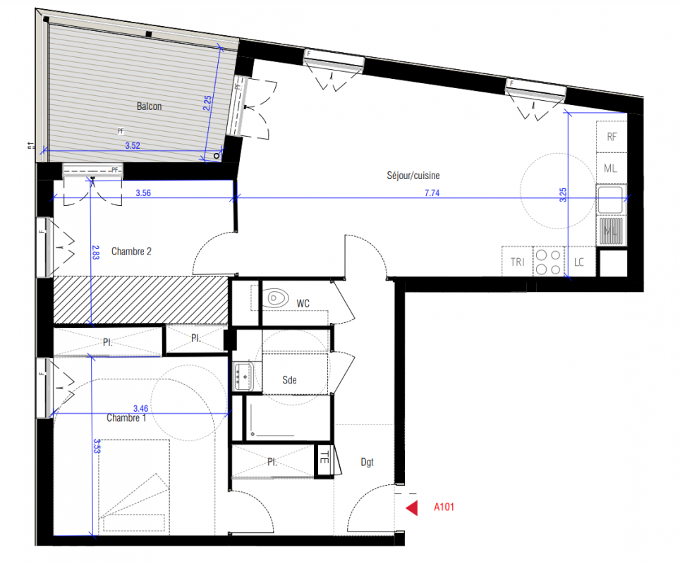 | Voir | Disponible | 376 000€ | A103 | Appt. | T3 | 66.7m2 | 0-RDC | Disponible | 376 000€ | Voir |