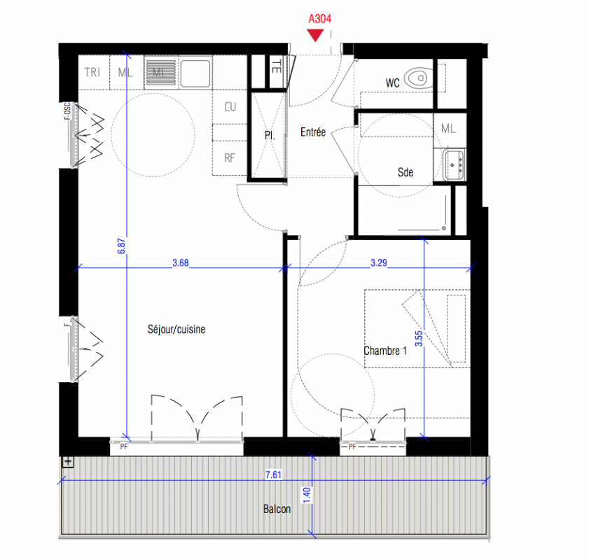 308 000€ Appt. T2 45.7m2 3ème