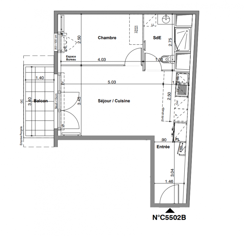 289 000€ Appt. T2 37.03m2 2ème
