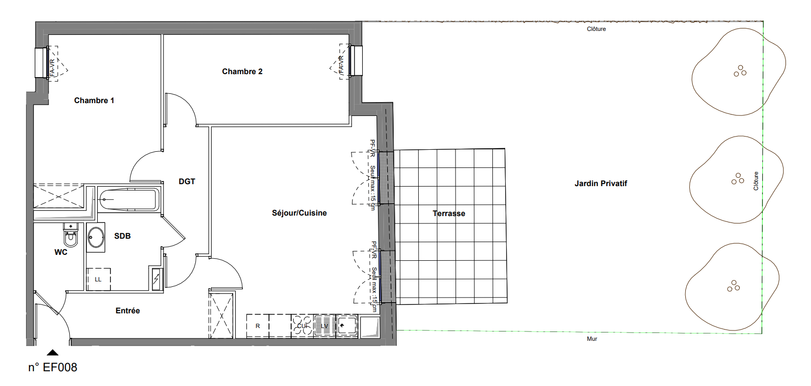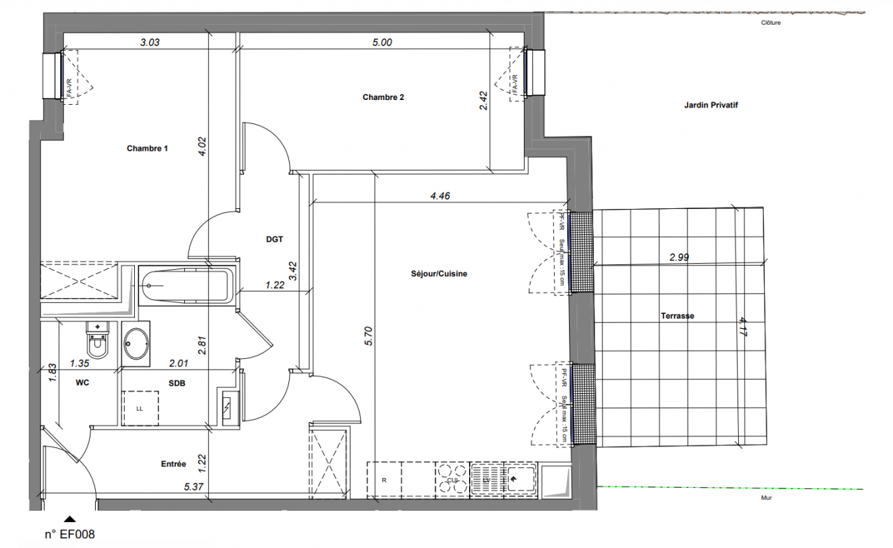 334 900€ Appt. T3 64.07m2 0-RDC