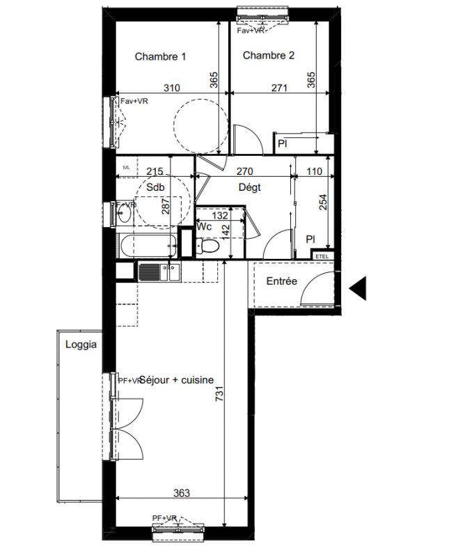 251 900€ Appt. T3 66.49m2 0-RDC