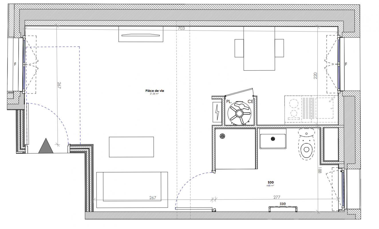 214 000€ Appt. Studio 25.25m2 0-RDC