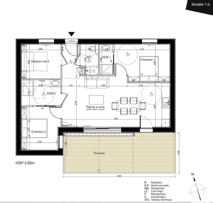 | Voir | Disponible | 355 145€ | M13 | Appt. | T3 | 76.1m2 | 0-RDC | Disponible | 355 145€ | Voir |