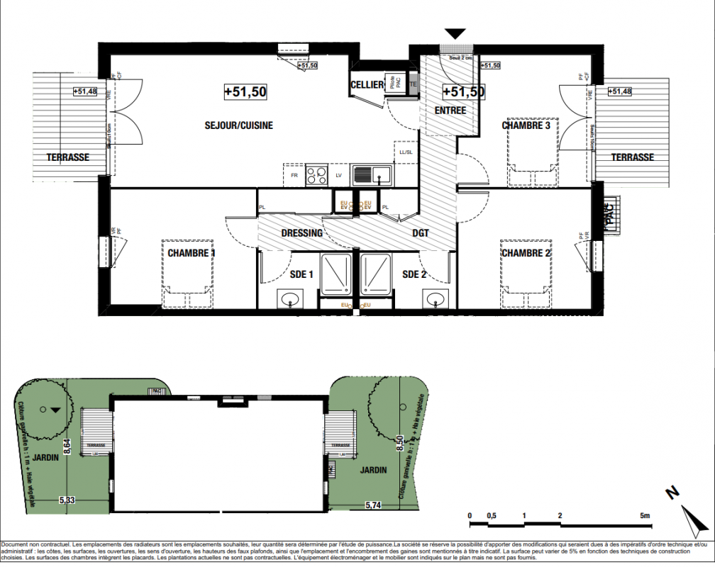 Chauffage et production d’eau chaude saniataire : individuelle. Electricité par pompe à chaleur ou ballon thermodynamique selon plan