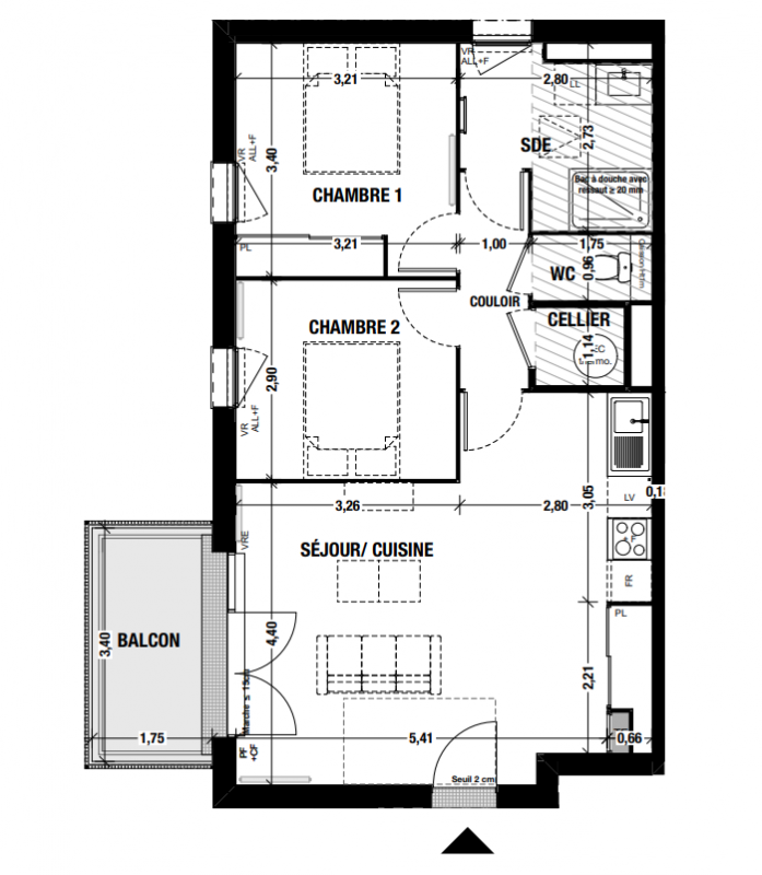 Un placard aménagé pour les T2, deux placards aménagés pour les T3.
