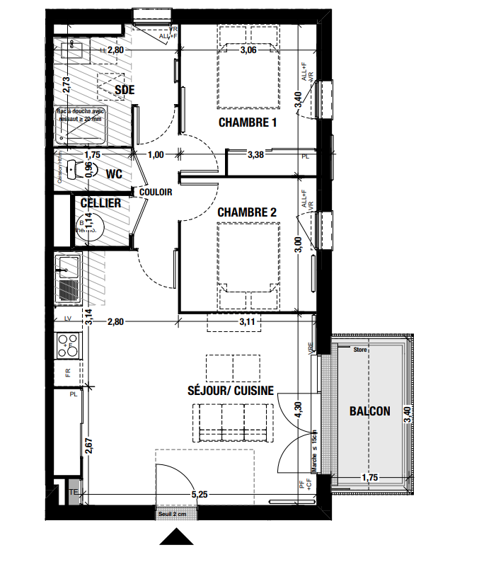 Un placard aménagé pour les T2, deux placards aménagés pour les T3.