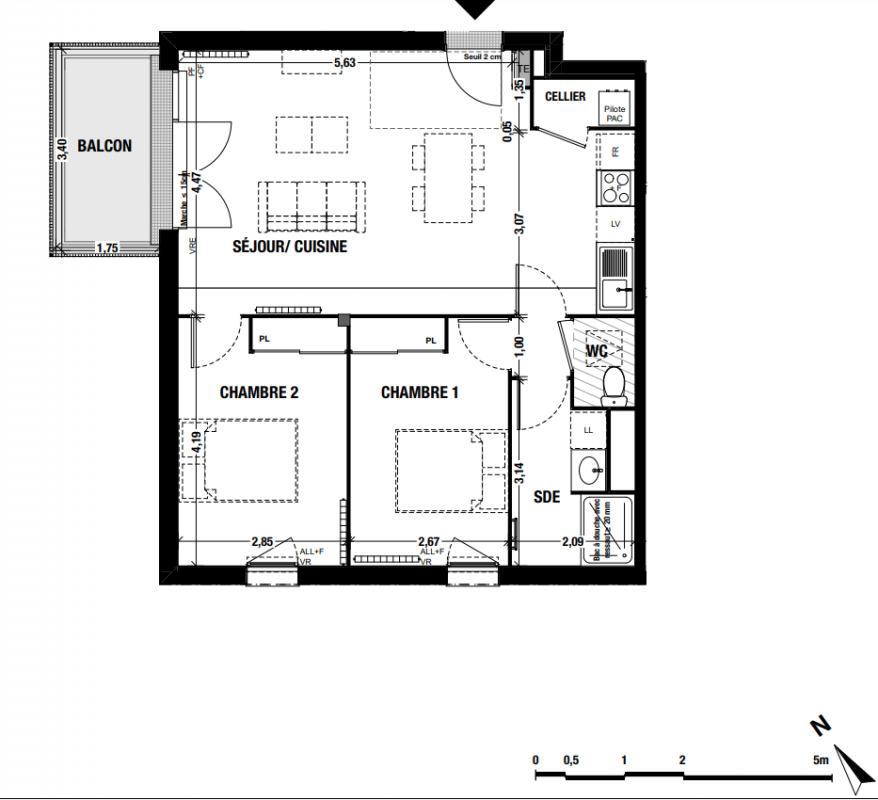 Un placard aménagé pour les T2, deux placards aménagés pour les T3.