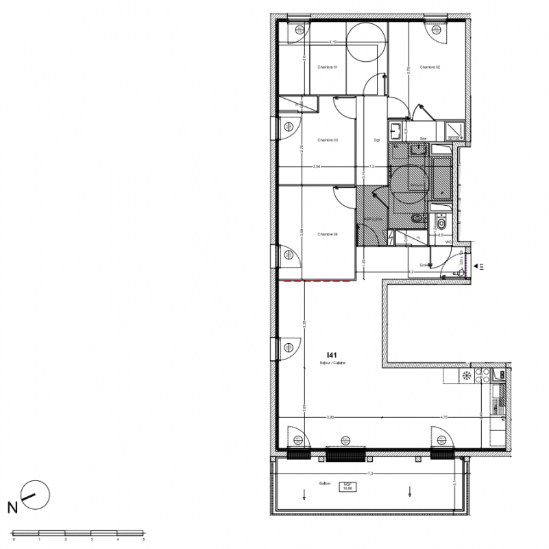 Pièces humides : Carrelage (45x45) avec sous couche acoustique + Faïence à hauteur d’huisserie au pourtour Douche/Baignoire