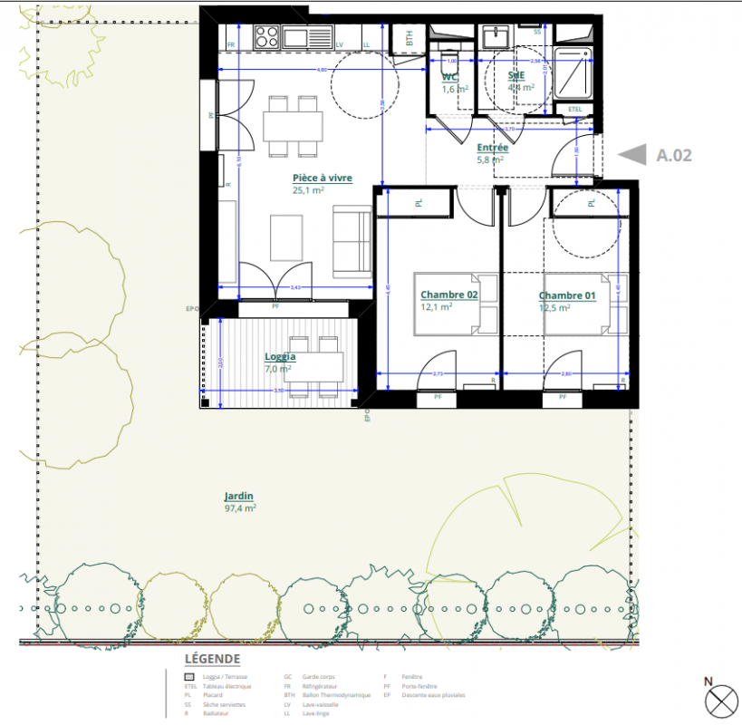 Jardins et loggias pour les appartements en rez-de-chaussée
