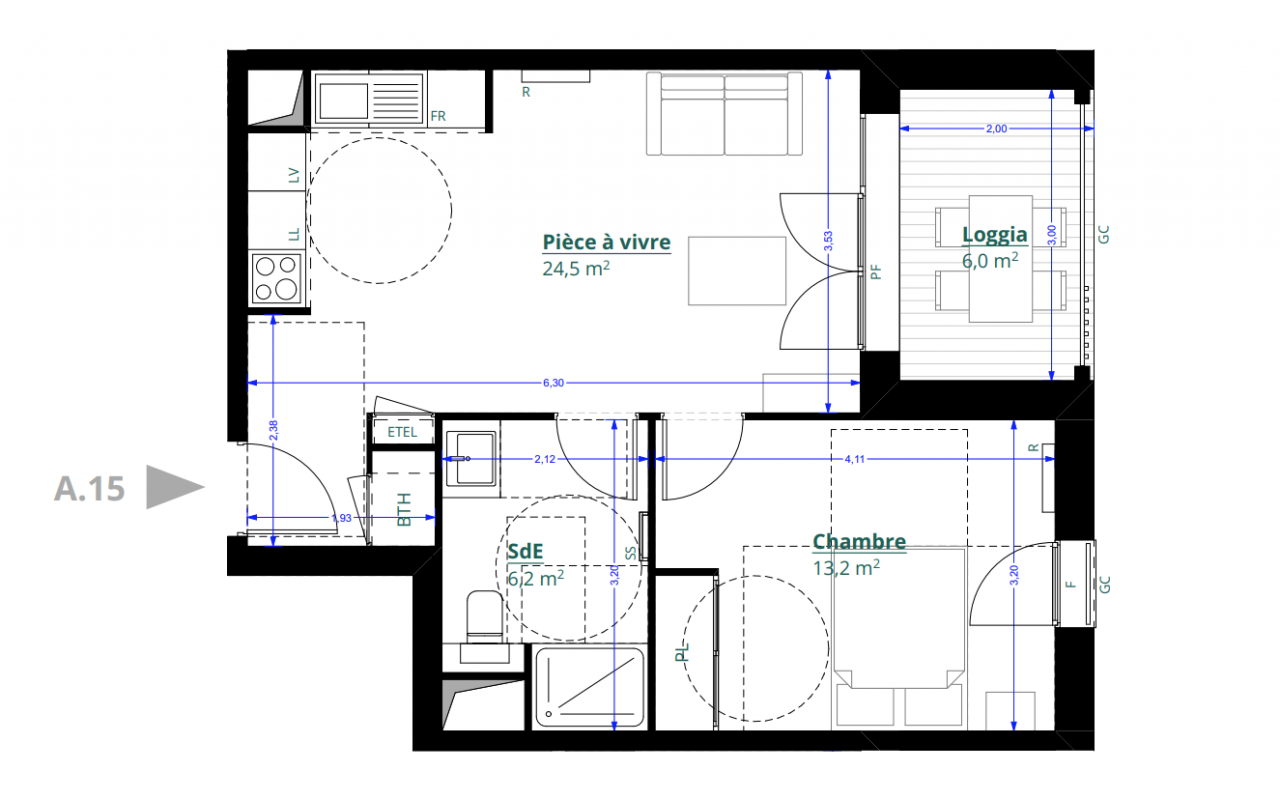 | Voir | Disponible | 219 000€ | A108 | Appt. | T2 | 44.6m2 | 1er | Disponible | 219 000€ | Voir |