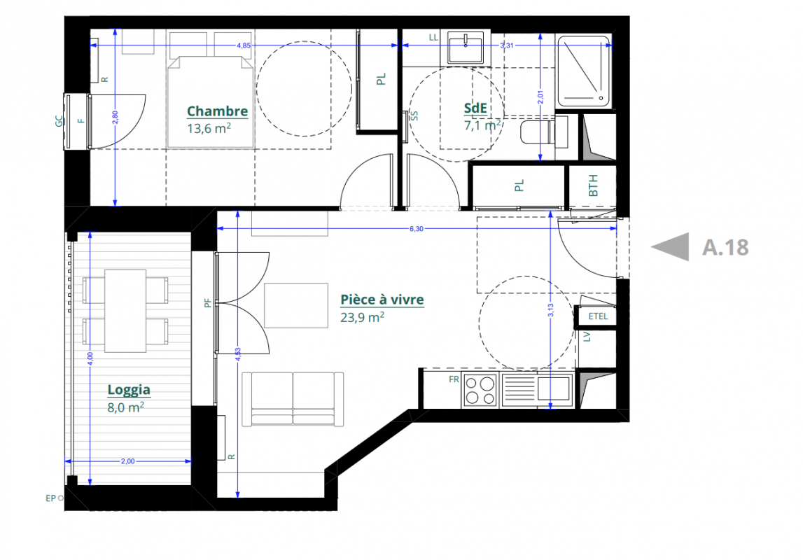 | Voir | Disponible | 217 000€ | A106 | Appt. | T2 | 46m2 | 1er | Disponible | 217 000€ | Voir |