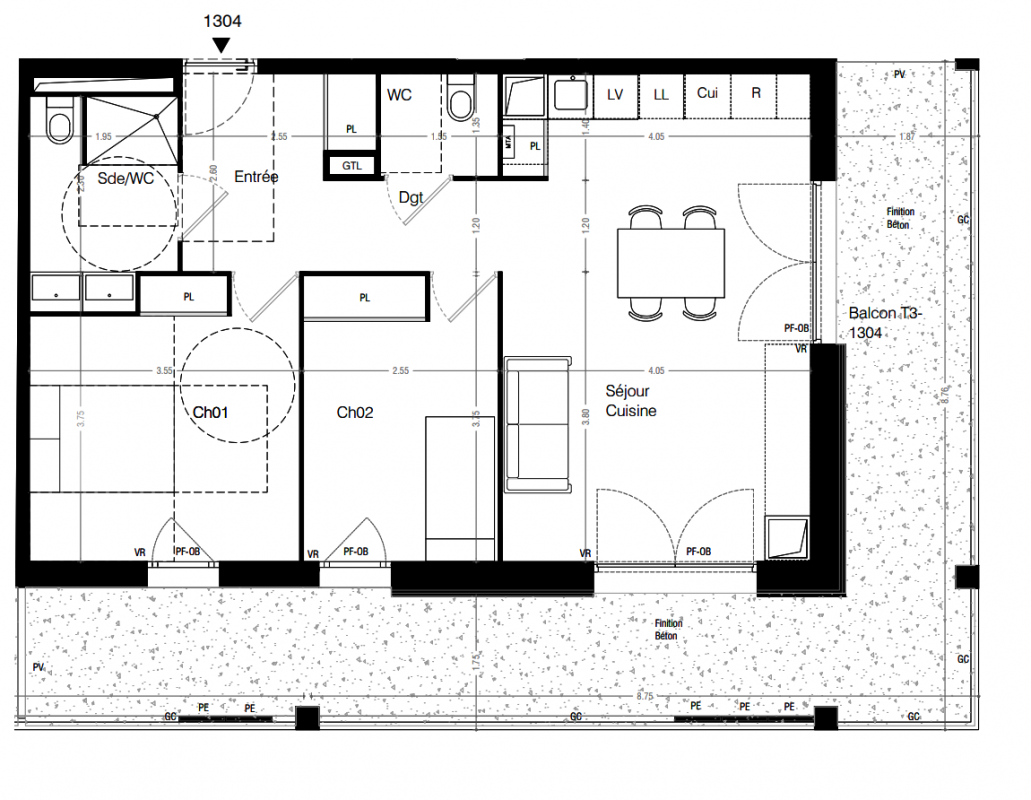 259 336€ Appt. - 63.1m2 2ème