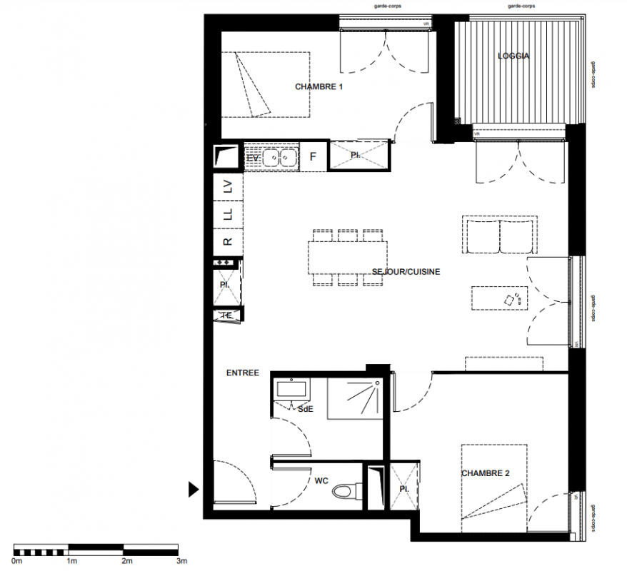 265 900€ Appt. T3 58.2m2 0-RDC