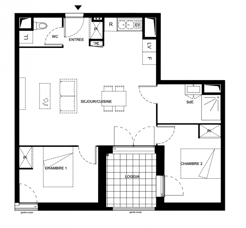 265 900€ Appt. T3 58.2m2 0-RDC