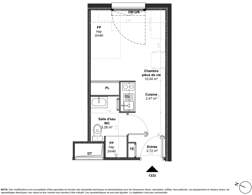108 300€ Appt. Studio 18m2 0-RDC