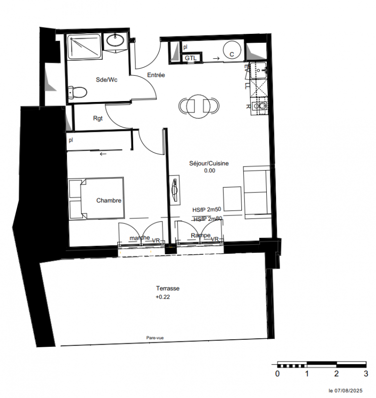Une cour intérieure se niche à l’arrière du projet, entre les deux bâtiments. Les appartements qui s’ouvrent sur cette cour ou sur la terrasse profitent d’agréables espaces extérieurs à usage privatif, soigneusement délimités par des jardinières végétalisées, assurant à la fois l’intimité et l’harmonie paysagère. Certains logements situés en étage bénéficient quant à eux de balcons, prolongeant les pièces de vie vers l’extérieur.