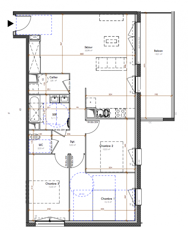 | Voir | Disponible | 269 899€ | 1103 | Appt. | T4 | 80m2 | 1er | Disponible | 269 899€ | Voir |