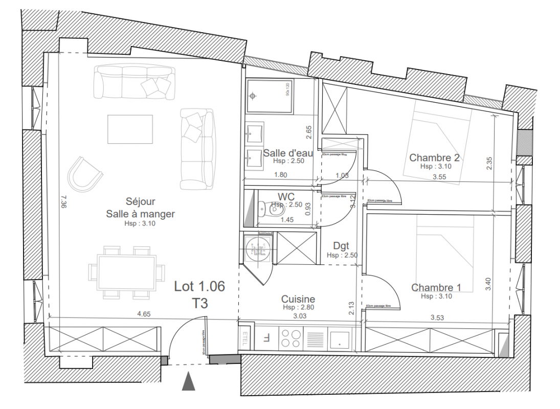 387 306€ Appt. T3 56.24m2 0-RDC